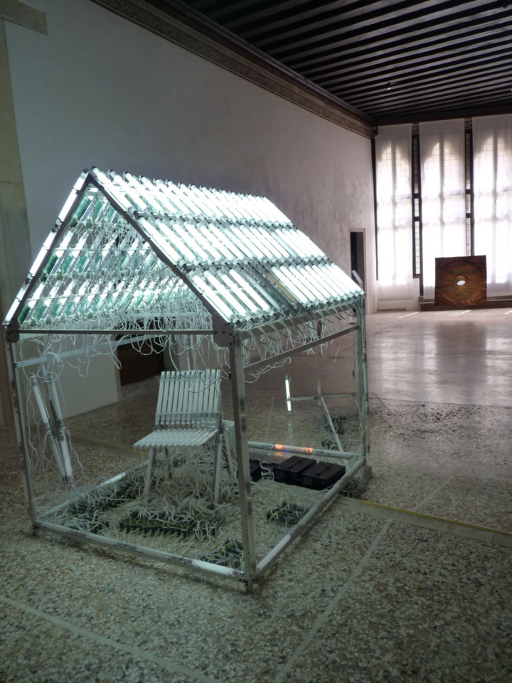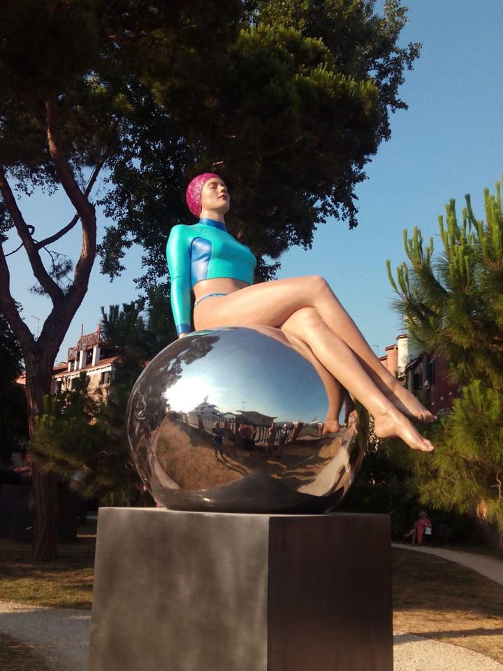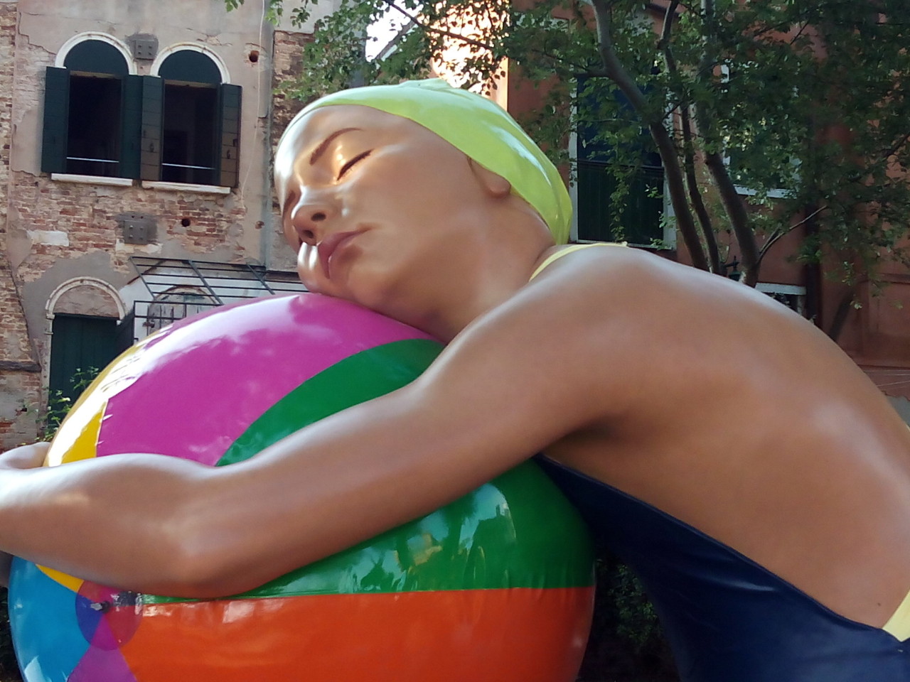 Ir a Veneza em ano de Bienal é uma experiência inesquecível para qualquer pessoa que aprecie arte – e aqui, obviamente, estou a referir-me a quem não faça distinções de gosto entre arte moderna e arte dita “clássica”, porque este evento se destina essencialmente a celebrar e mostrar o que de melhor se faz no mundo de hoje (sendo que o hoje, neste caso, pode também abarcar algumas décadas atrás, mas não mais do que isso). Mesmo não indo ao recinto da exposição propriamente dita, é como se “tomássemos um banho” de arte, e vimos de lá com os olhos e o espírito cheios de contentamento, e os horizontes mais abertos. Mesmo que não se aprecie tudo o que se vê, mesmo que não se ache “piada nenhuma” a certas obras, mesmo que só se consiga perceber a intenção e a finalidade de alguns trabalhos depois de ler o respectivo folheto ou painel explicativo, ainda assim vale a pena ver tudo o que for possível.
