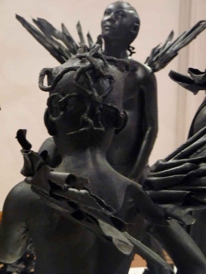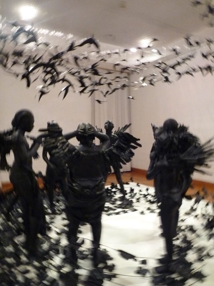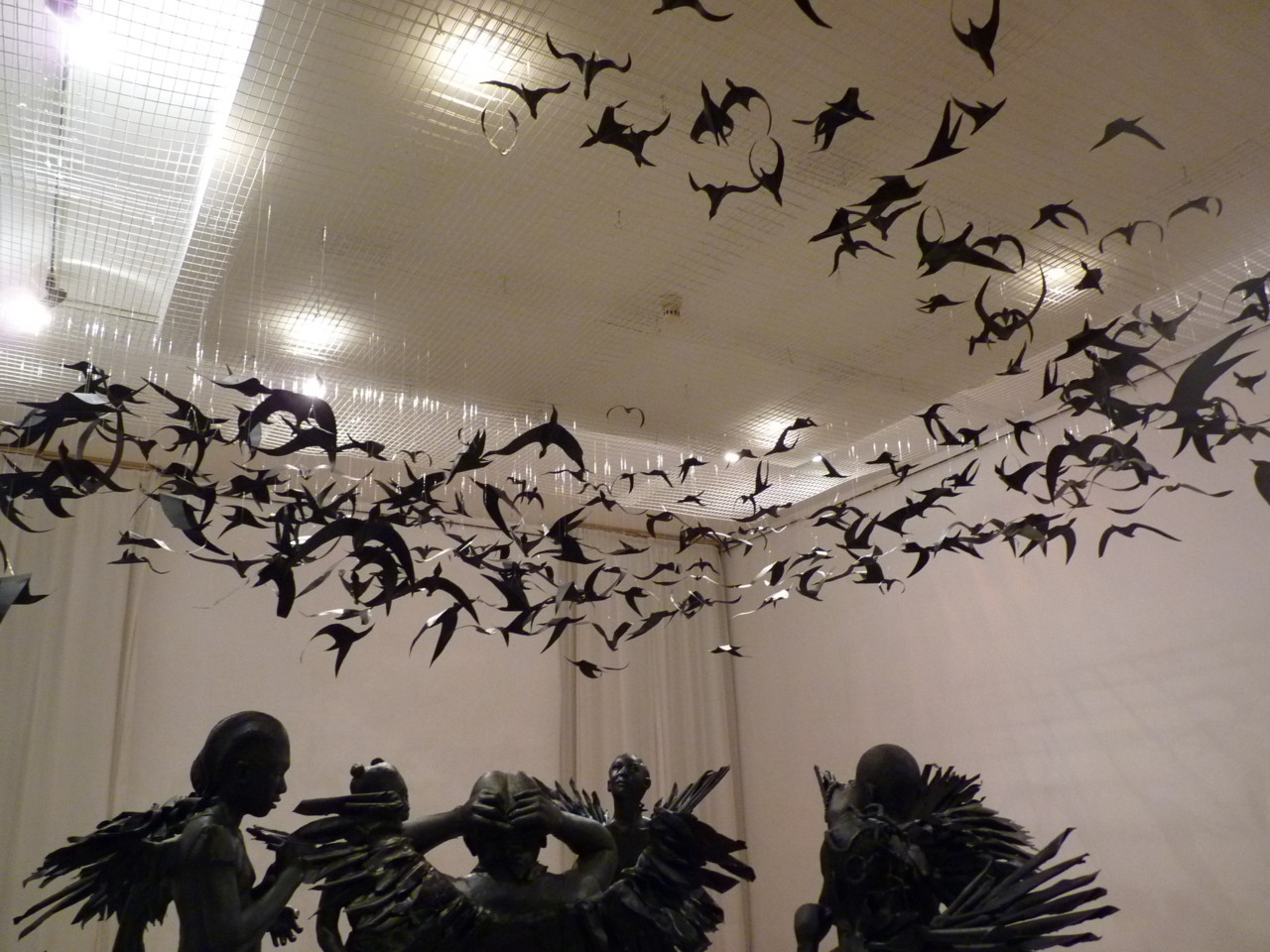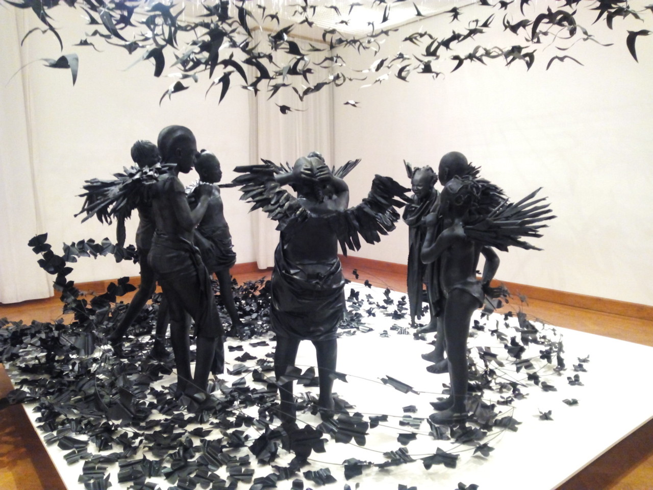 Uma das obras mostradas na Scoletta dei Tiraoro e Battioro, onde se alojou a representação da Nigéria nesta Bienal, é uma (enganadoramente) encantadora instalação que conta a história de Sim, uma menina ioruba que vive em dois mundos alternativos: no mundo real é uma criança de nove anos que foi alugada como empregada doméstica na cidade de Lagos; no seu mundo de sonho, ela voa livremente entre borboletas e pássaros falantes. A escultora Peju Alatise dedicou este trabalho a todas as meninas da Nigéria, trazendo para a ribalta a discriminação, os maus-tratos e atrocidades, e a falta de protecção social e política de que as crianças do sexo feminino são alvo no seu país.